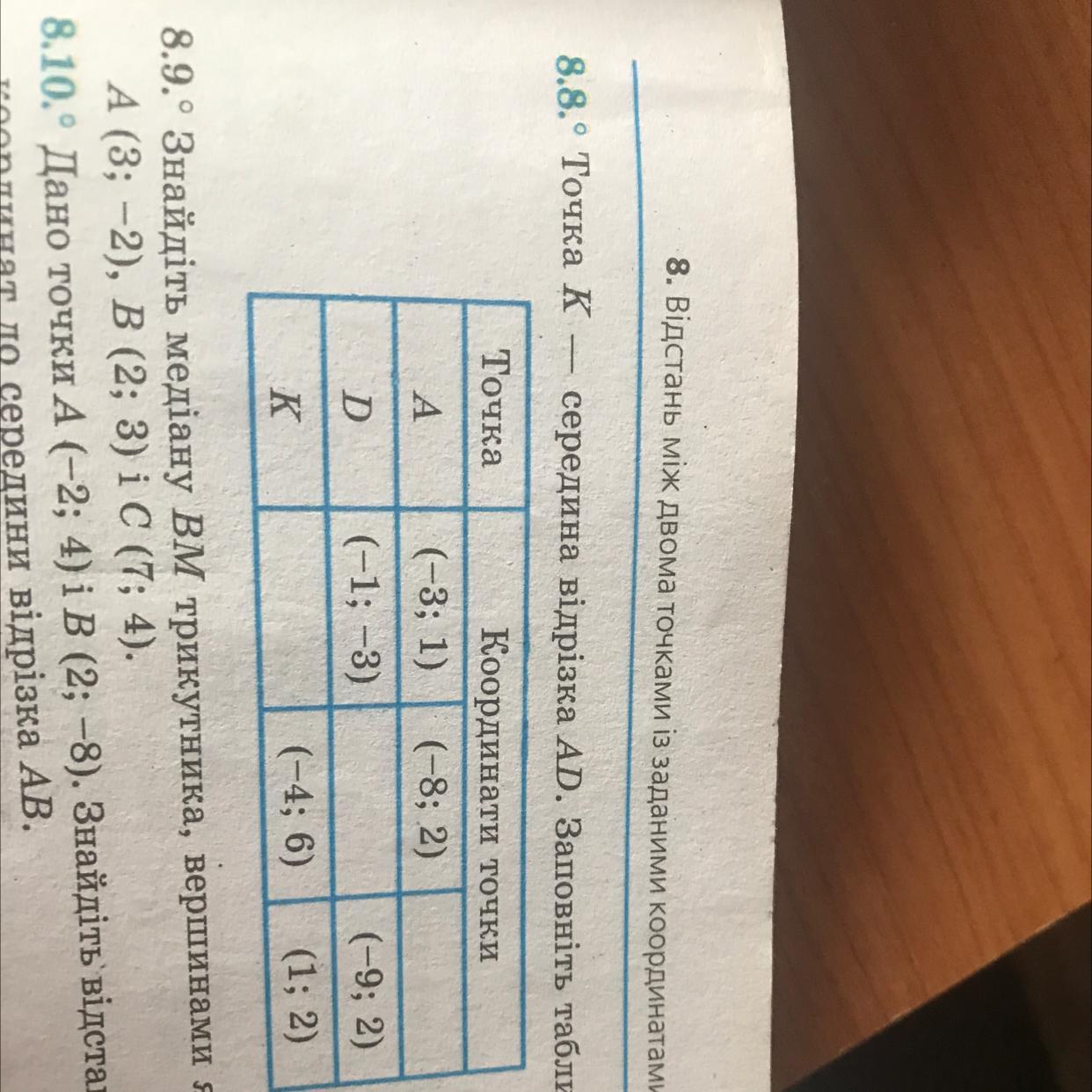 8.8.° Точка К середина відрізка AD .Не таблиця а розписати !!!!!!