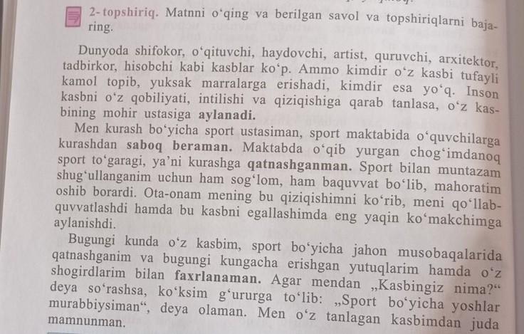 2- topshiriq. Matnni o'qing va berilgan savol va topshiriqlarni baja- ring
