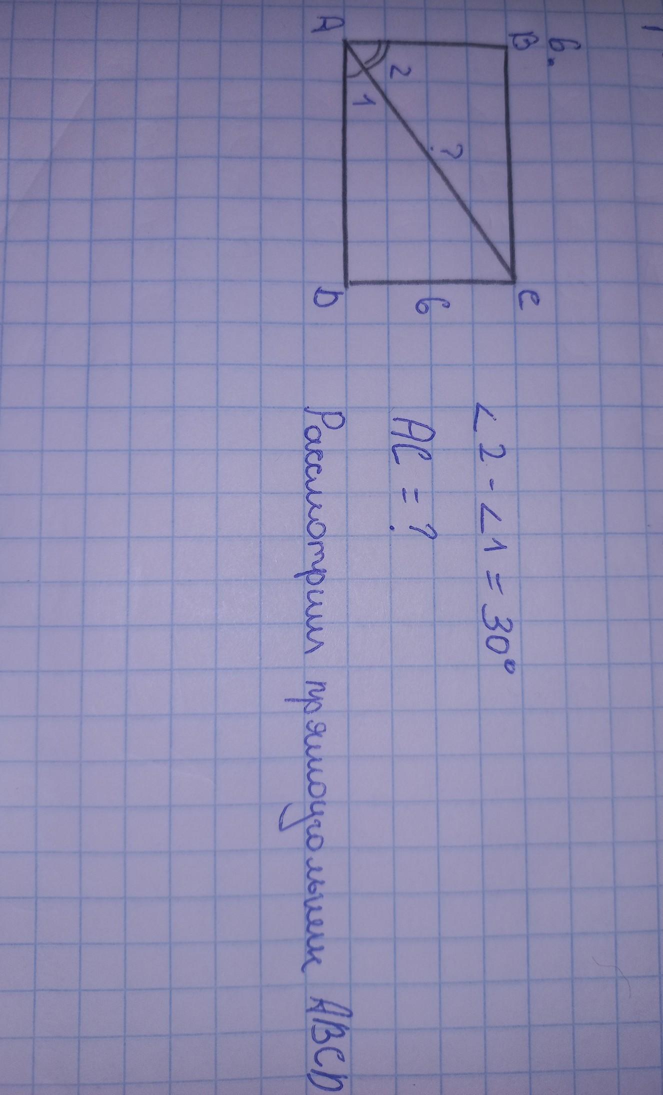 => AC=2·AB= 12 ( т.к. в прямоугольном треугольнике катет , лежащий напротив угла 30° -АВ в раза меньше гипотенузы АС)