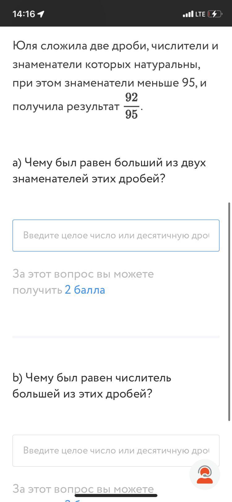 Отсюда следует, что две дроби имели знаменатели 5 и 19, где больший из двух знаменателей этих дробей равен 19.