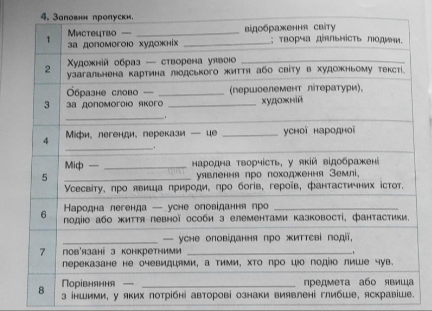 2 митця,3це слово яке допомагає створити художній образ. 4прозові твори усної народної творчості. 5усна народна творчість, творча діяльність народу 6 про яку-небудь історичнуподію. 8пояснювання предмет