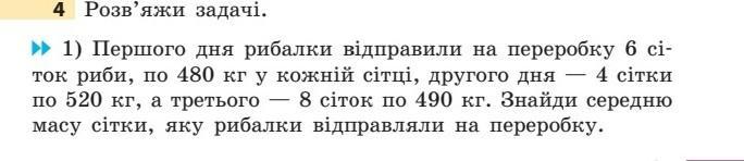 - відправили на переробку третього дня , середня маса сітки - 2880 плюс 2080 плюс 3920 дорівнює 8880 кг - всього риби відправили на переробку ,8880 поділити на 3 дорівнює 2960 кг - середня маса сітки , яку рибалки відправляли на переробку .
