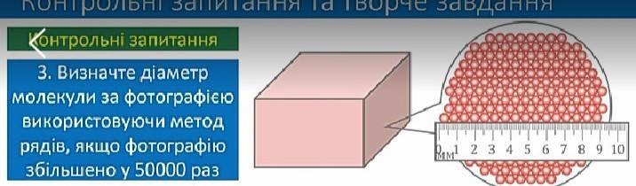 3. Визначте діаметр молекули за фотографією використовуючи метод рядів, якщо фотографію збільшено у 50000 раз