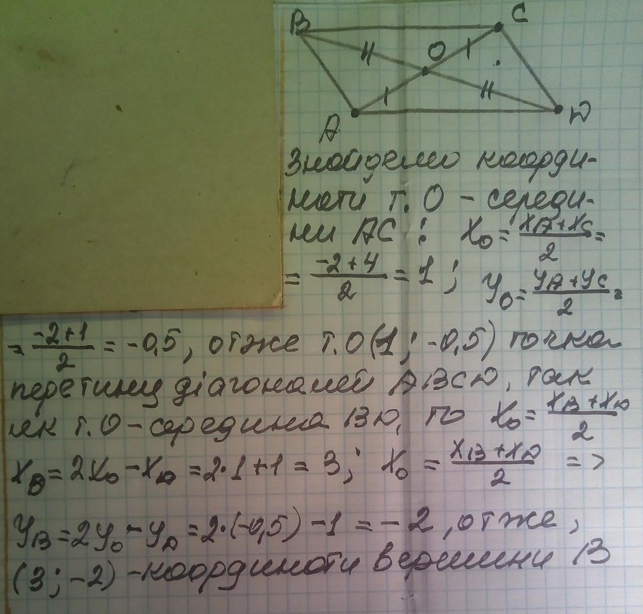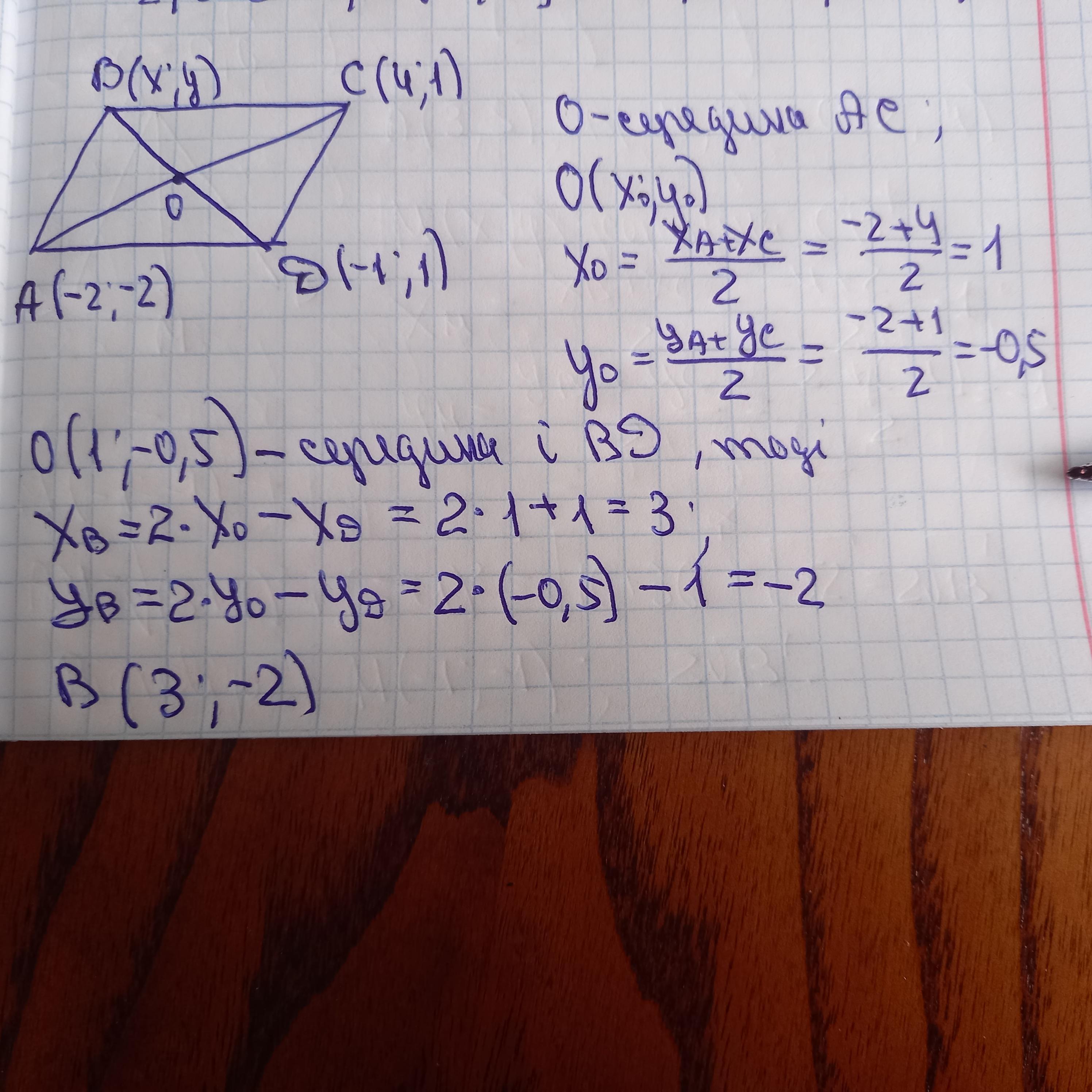 8.20. Чотирикутник ABCD - паралелограм, А (-2; -2), С (4; 1),