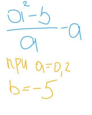 A-b/a-a , если a=0,2 и b= -5, то 0,2²-5/0,2-0,2=0,2-5-0,2=-5