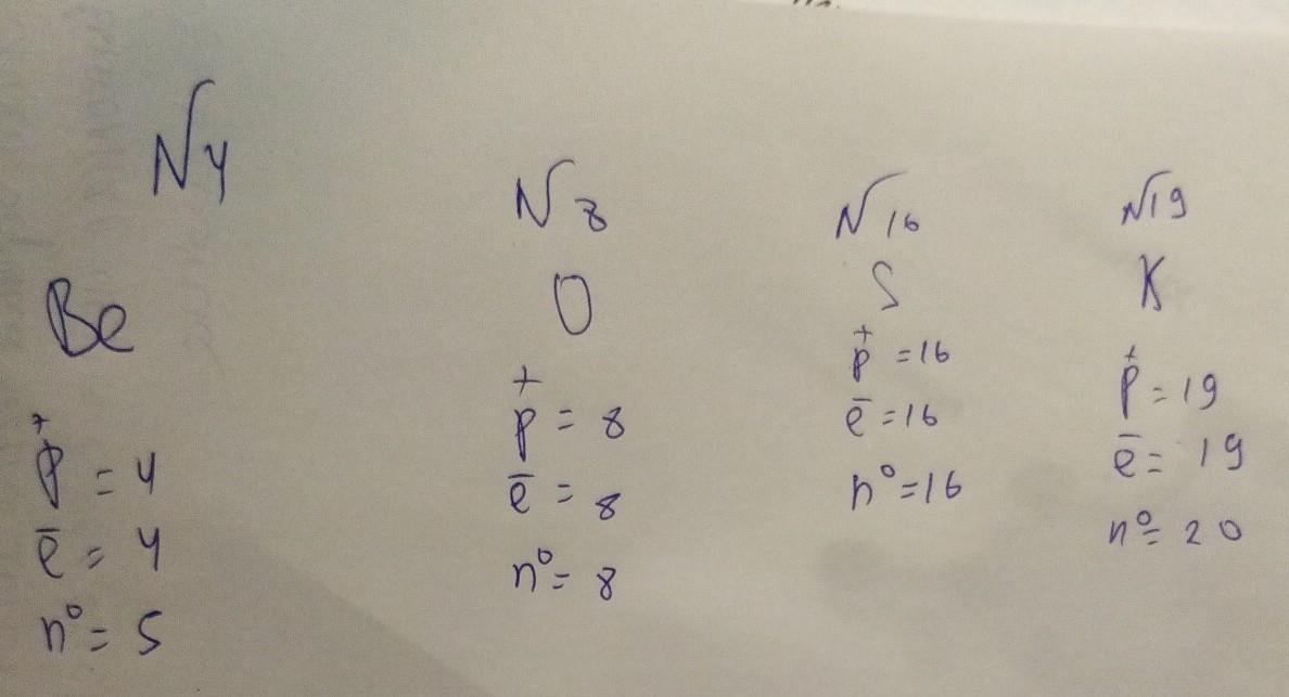 Записати, яку кількість протонів, електронів і нейтронів містять елементи з порядковими номерами №4, №8, Nº16, Nº19