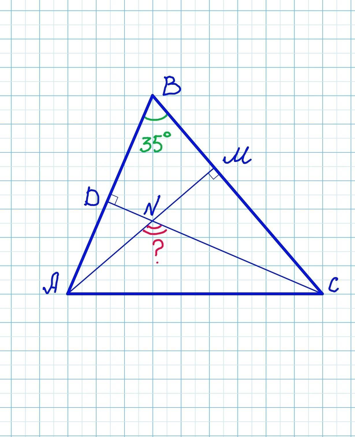 Высоты AM и CD остроугольного треугольника ABC пересекаются в точке N. Найдите угол ANC, если угол ABC =35°