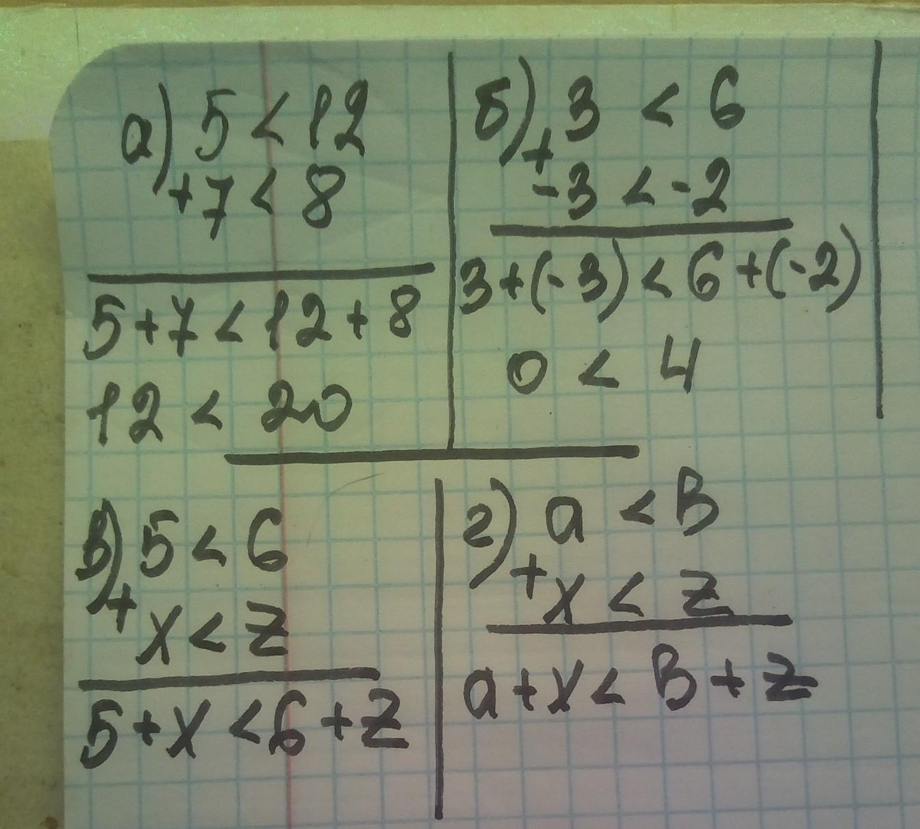 Додайте почленно нерівності а) 5 < 12 i 7< 8; б) 3 < 6 i -3 < -2 в) 5 < 6 i x < Z; г) a < b i x < z. ОЧЕНЬ СРОЧНО ДАЮ 35 БАЛОВ !!!