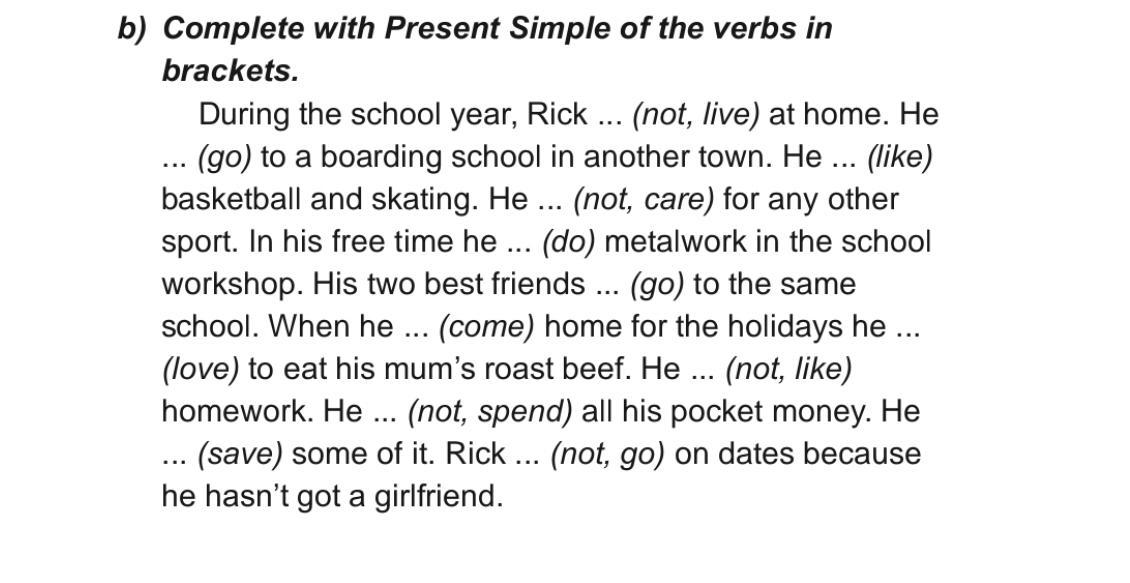 doesn't live; goes; likes; doesn't care; does; comes; loves; doesn't like; doesn't spend; saves; doesn't go