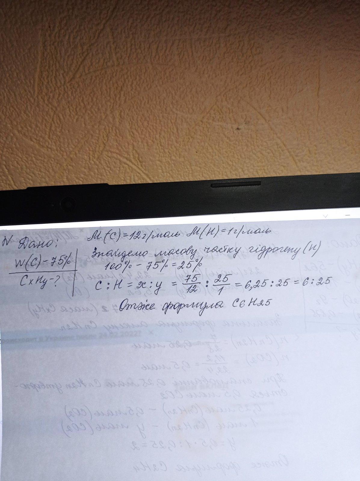 Задача No1. До складу органічної речовини входять атоми Карбону, масова частка яких становить 75%, а решта - Гідроген. Виведіть молекулярну формулу речовини.