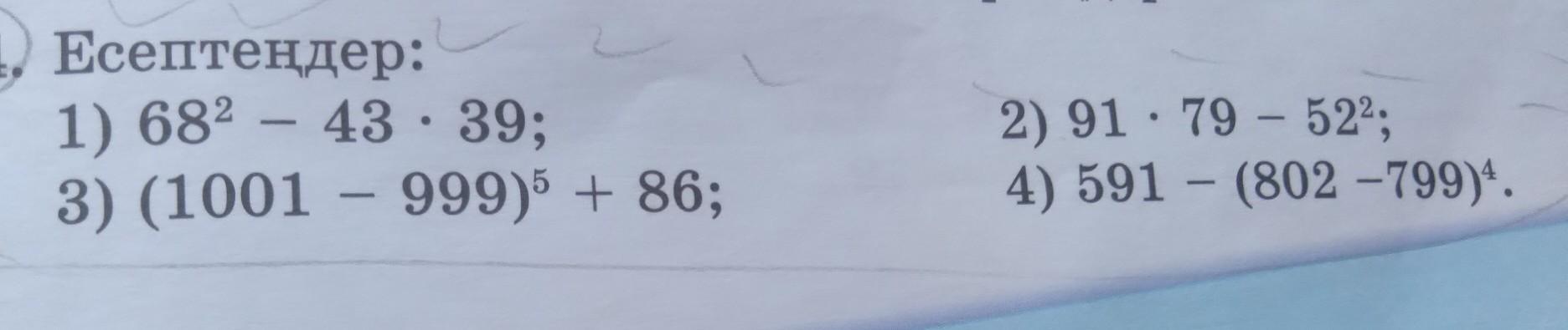 204. Есептеңдер: 1) 682 43 39; - 3) (1001 - 999)" + 86; 2) 91-79-52%; 4) 591 - (802-799)".
