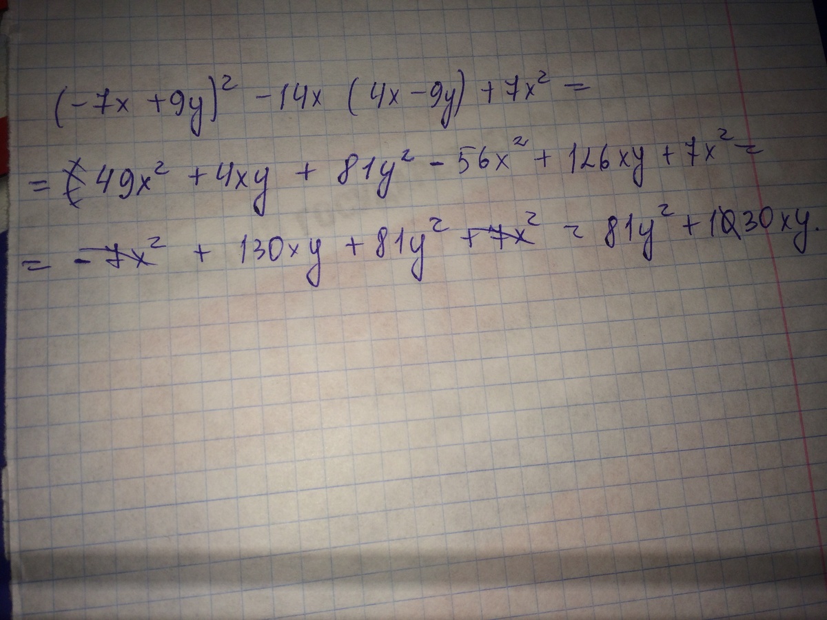 раскладывается это так (-7x)²+ 2(-7x)(9y)+ (9y)²-14x(4x-9y)+7x²=