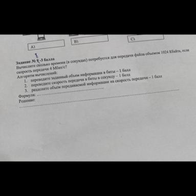 3. разделите обьем передаваемой информации на скорость передачи - 1 балл