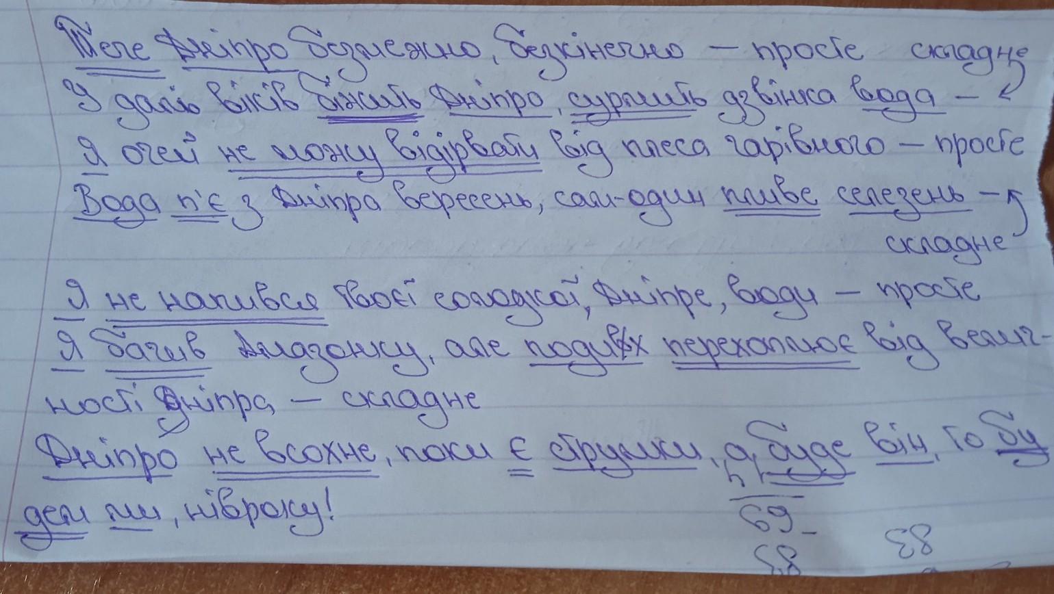 Перепишіть. Визначте й підкресліть граматичні основи речень. Укажіть речення прості та складні. 1. Тече Дніпро безмежно, безкінечно (П. Перебийніс). 2. У даль віків біжить Дніпро, сурмить дзвінка вода (В. Крищенко). 3. Я очей не можу відірвать від плеса чарівного (М. Чернявський). 4. Воду п’є з Дніпра вересень, сам-один пливе селезень (Б. Мозолевський). 5. Я не напився твоєї солодкої, Дніпре, води (А. Малишко). 6. Я бачив Амазонку, але подих перехоплює від величності Дніпра (Б. Ступка). 7. Дніпро не всохне, поки є струмки, а буде він, то будем ми, нівроку! (М. Самійленко).