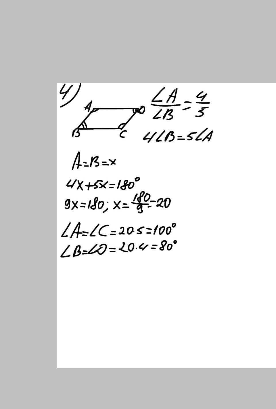 сума протилежних кутів паралелограма=200, а прилеглих=180