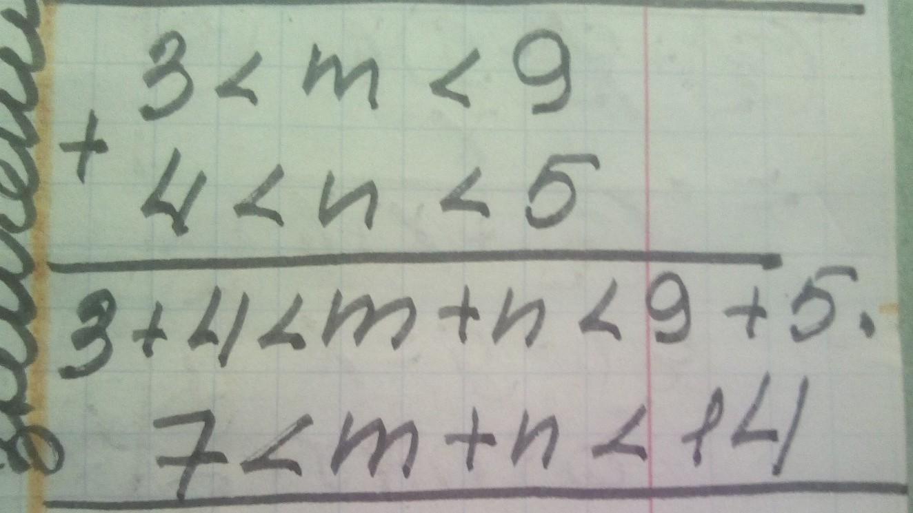 Оцініть значення виразу m + n, якщо 3 < m < 9 i * 4 < n < 5