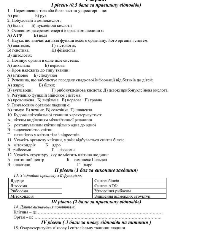 Підсумковий урок за теми: « Вступ. Організм людини як біологічна система». помогите пожалуйста