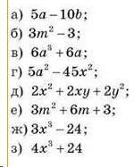 е) 3m^2+6m+3= 3(m^2+2m+1)=3(m+1)^2