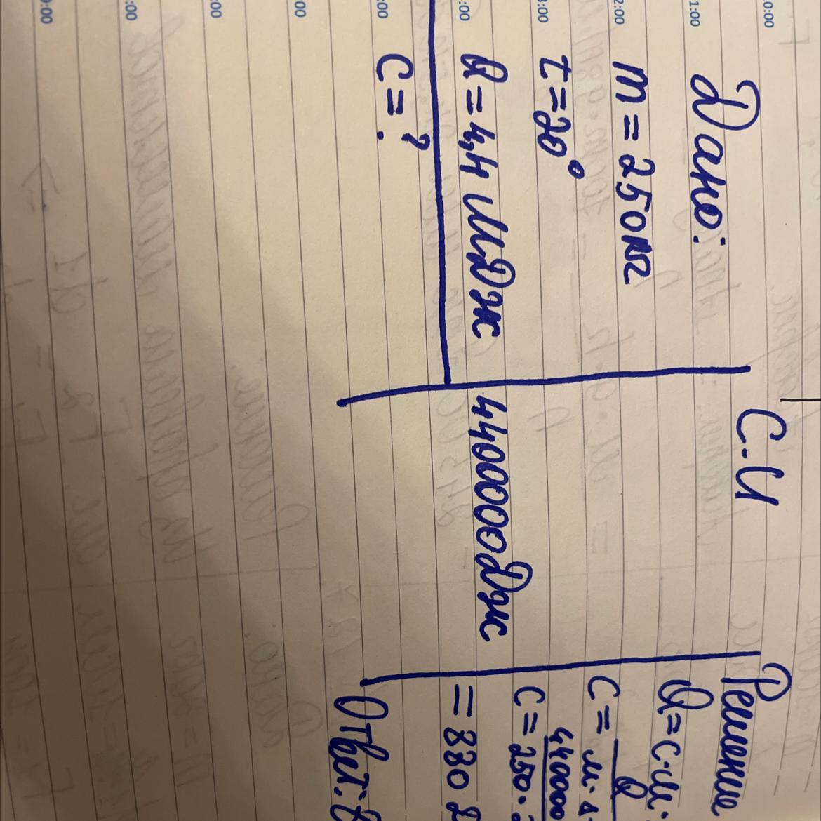 Для нагревания бетонной плиты массой 250 кг на 20 градусов Цельсия потребовалось 4,4 МДж теплоты. Какова удельная теплоёмкость бетона?