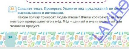 Какую пользу приносят людям пчёлы? (Вопросительное)Пчёлы собираю с цветов нектар и превращают его в мёд. (Повествовательное)Мёд-ценный и очень полезный для человека продукт.(повествовательное)