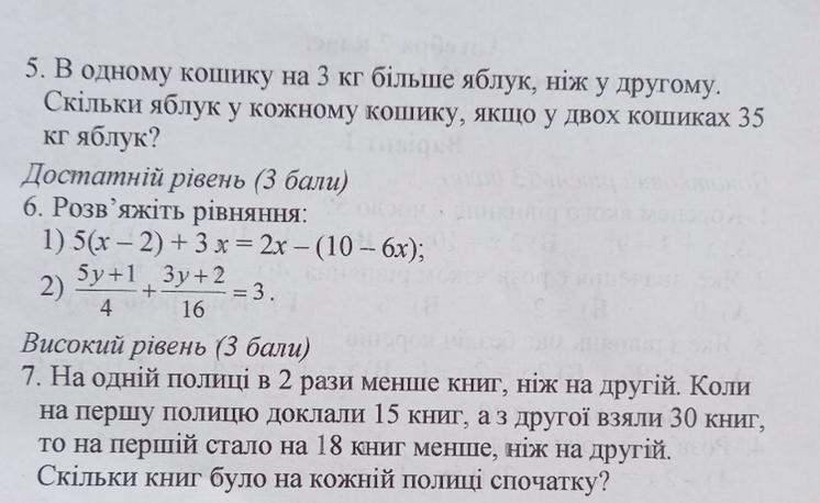 5) Нехай в першому кошику x - кг, тоді в другому х + 3