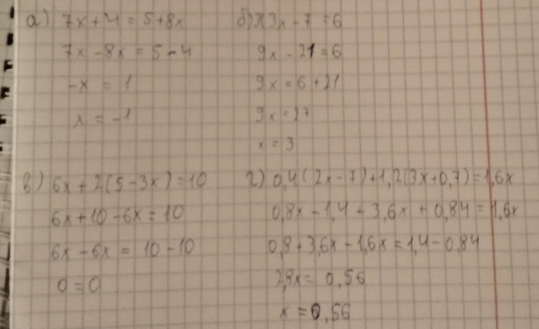 г)0.4(2х-7)+1.2(3х+0.7)=1.6х
