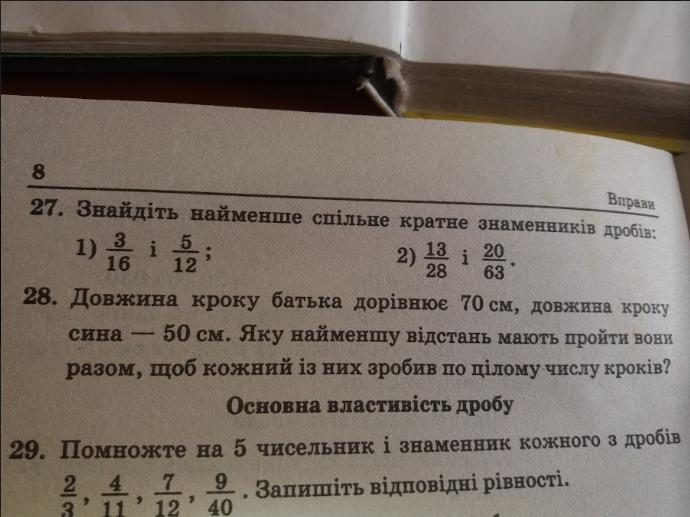 27. Знайдіть найменше спільне кратне знаменників дробів: