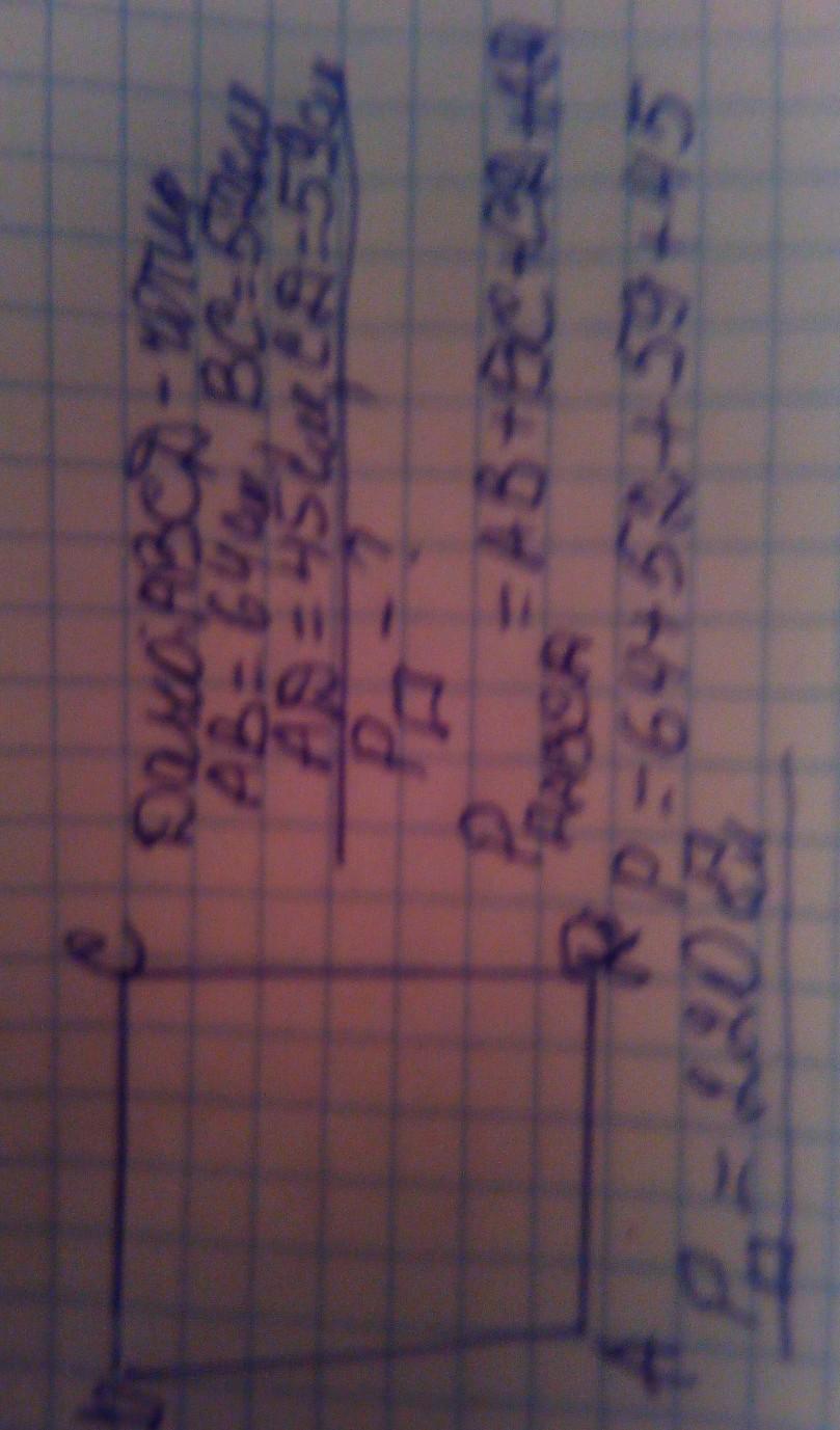 Знайдіть периметр чотирикутника сторони якого дорівнюють 52 см 64 см 45 см і 59 см