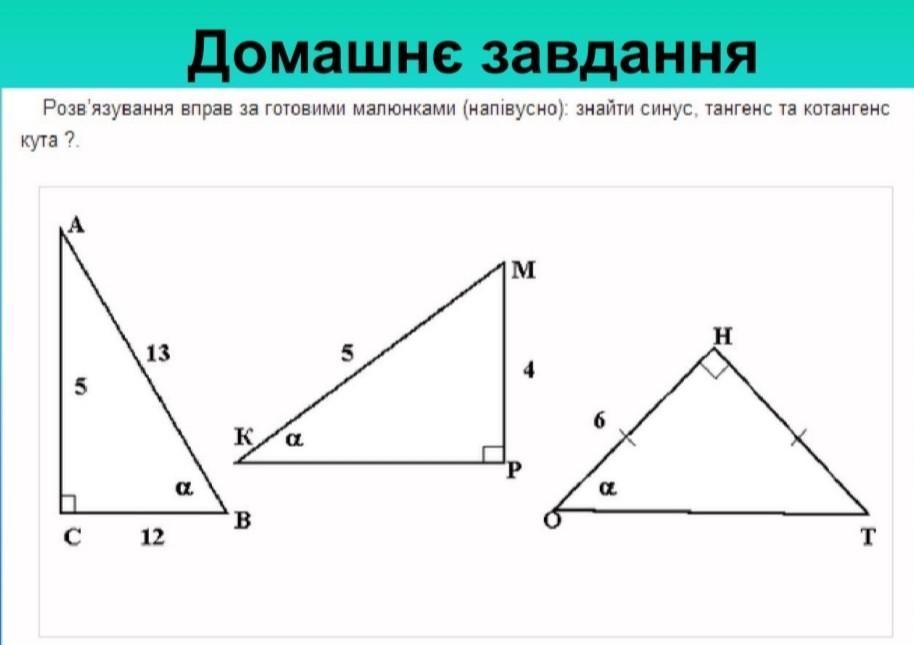 sinα=HT/OT=6/6√2=1/√2=√2/2