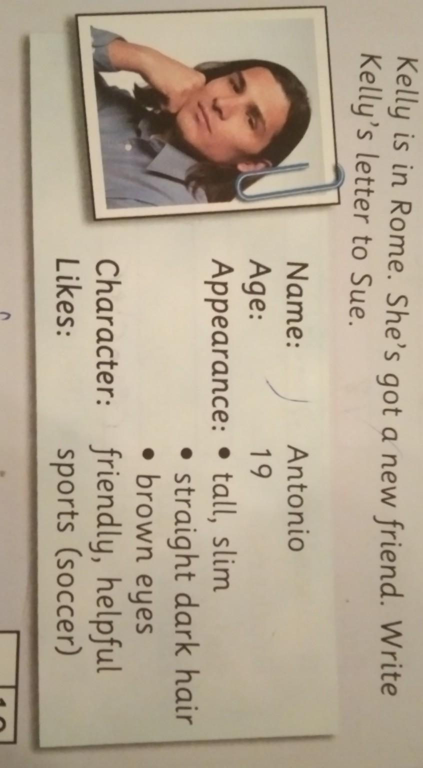 This is Antonio. He is 19 hears old. He is slim and tall. He has got straight dark hair and brown eyes. He is friendly and helpful. He is likes sports (soccer).