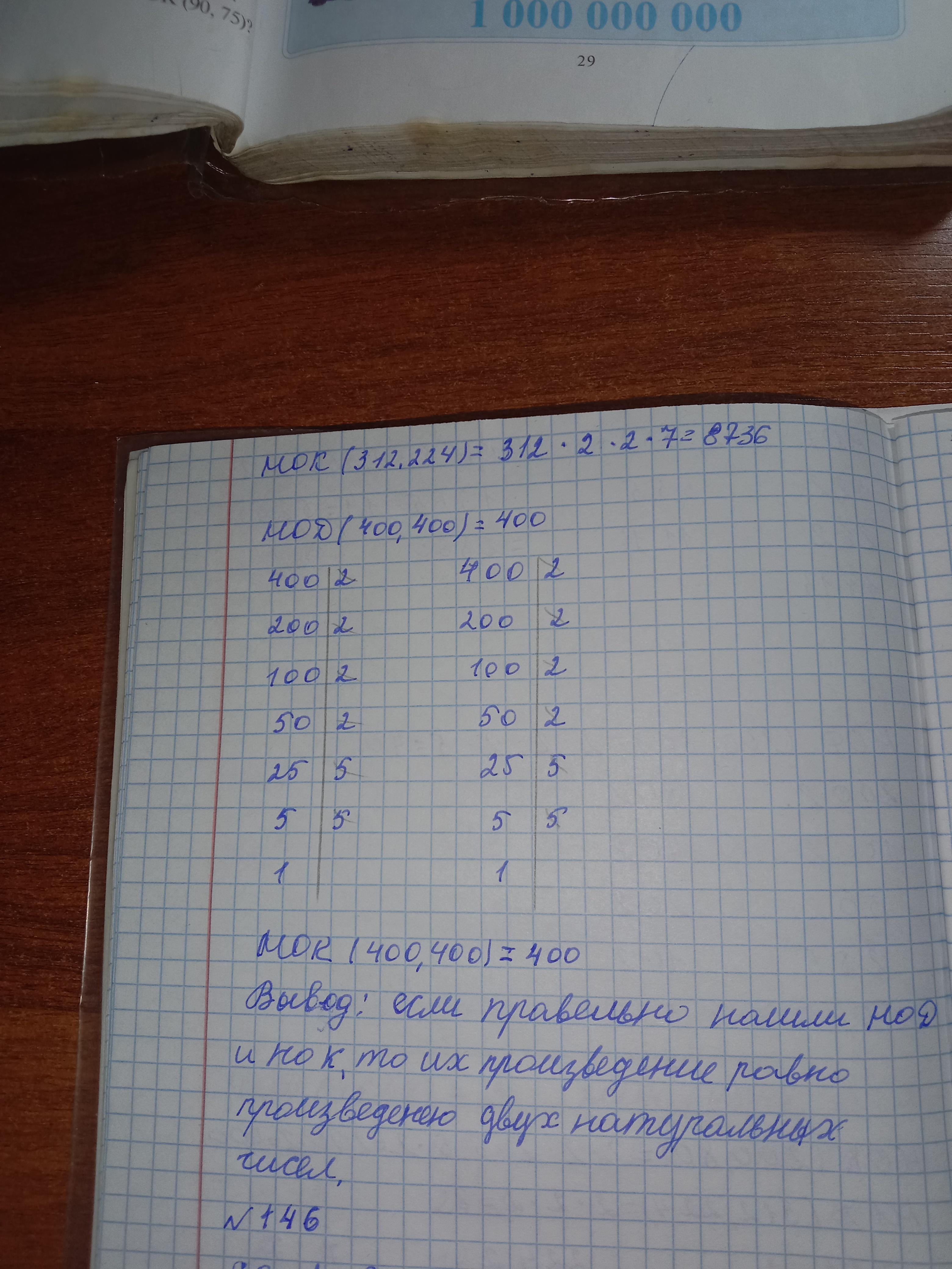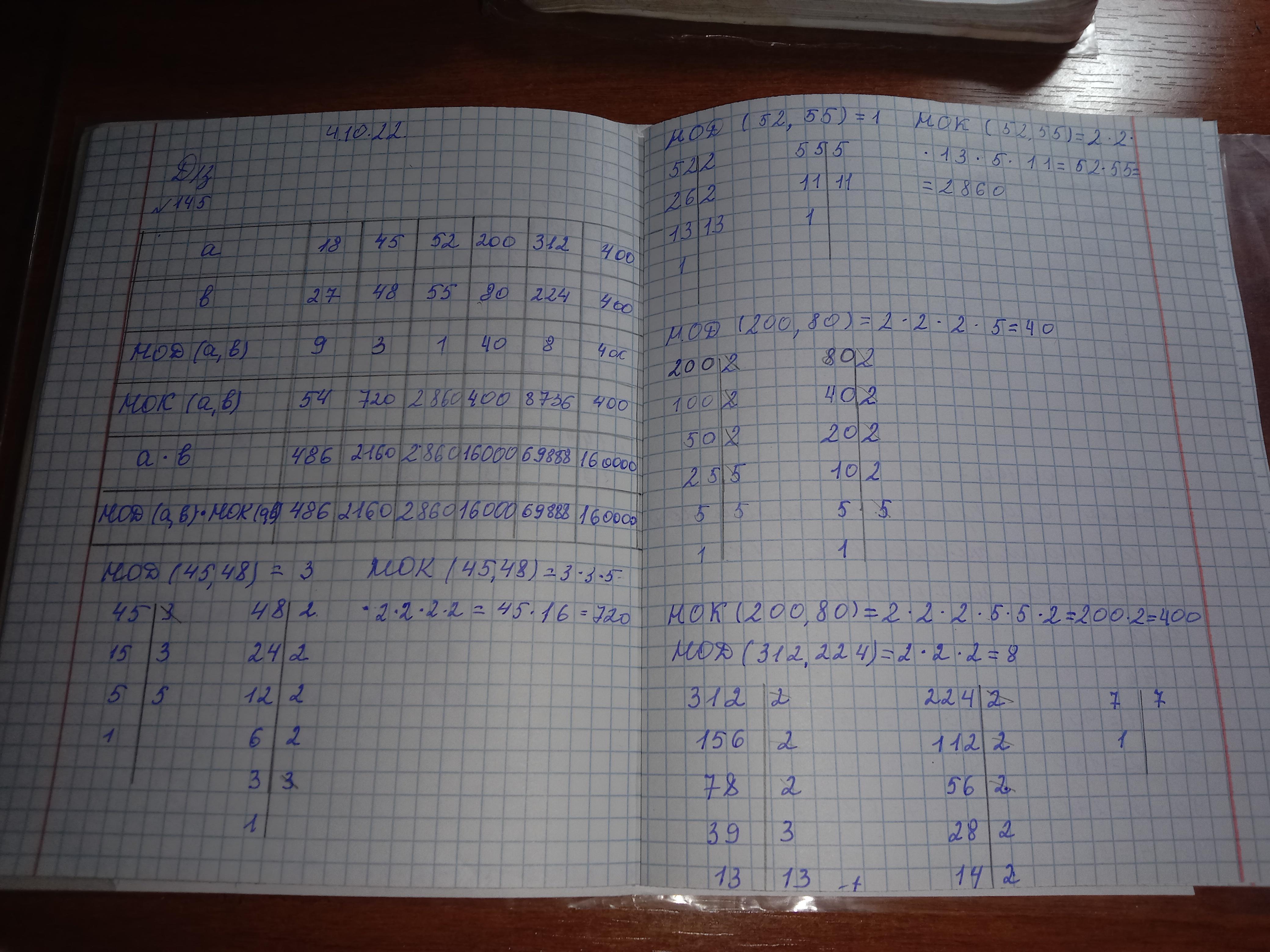 145. Заполните таблицу и сделайте вывод: 18 27 9 54 486 486 b НОД (a, b) HOK (a, b) a.b НОД (a, b) HOK(a, b) 45 52 200 48 55 80 312 400 224 400. ресунок