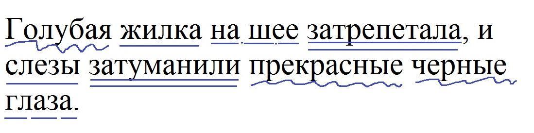 3. Сделать синтаксический разбор предложения: Голубая жилка на шее затрепетала, и слезы затуманили прекрасные черные глаза. 1.Повест. 2....И Т.Д.