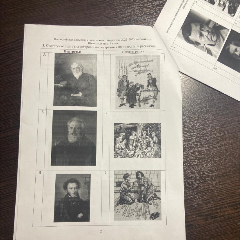 5. Соотнесите портреты авторов и иллюстрации к их повестям и рассказам.