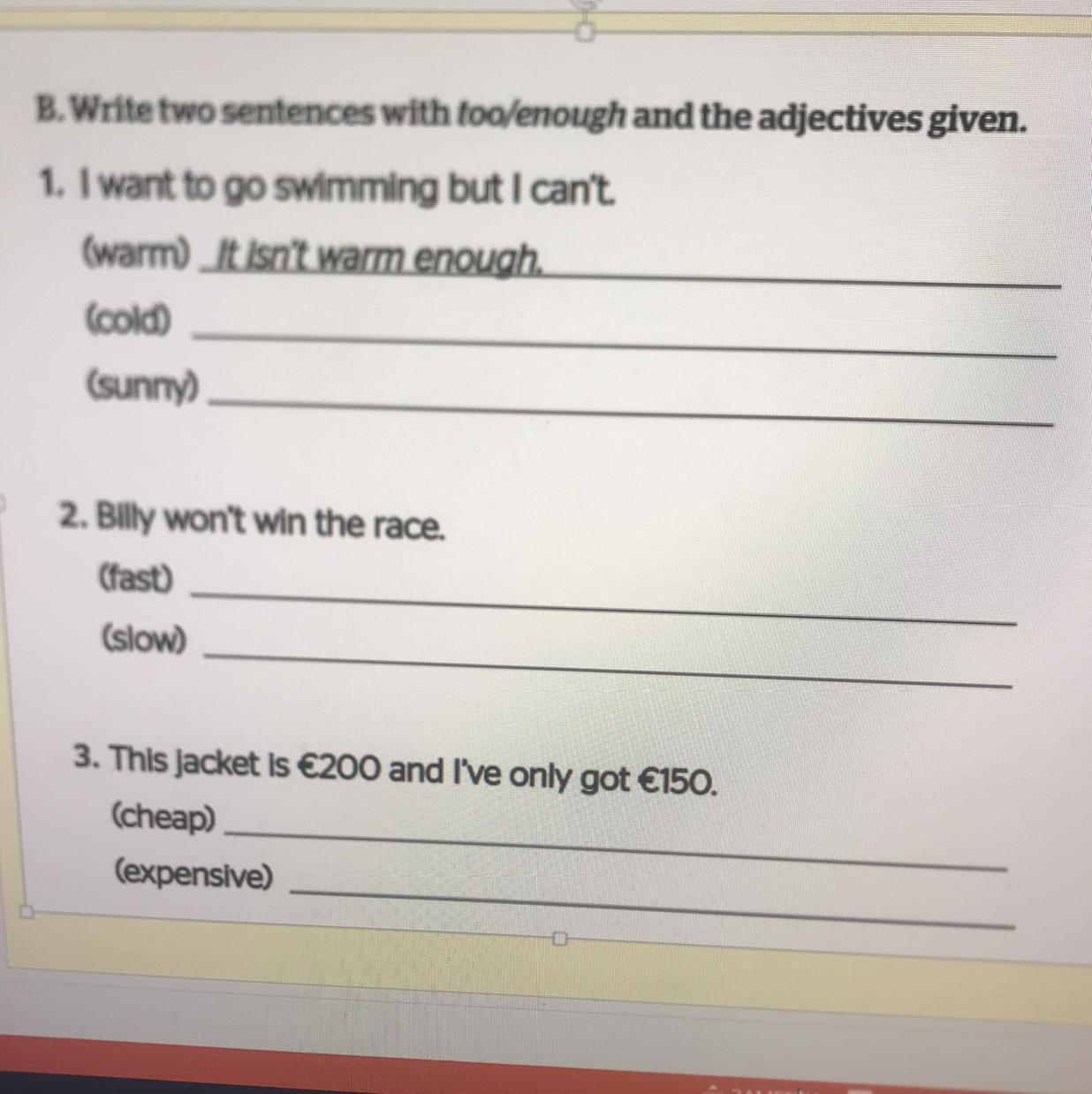 2.its not sunny enough (не уверен, спорный вопрос)