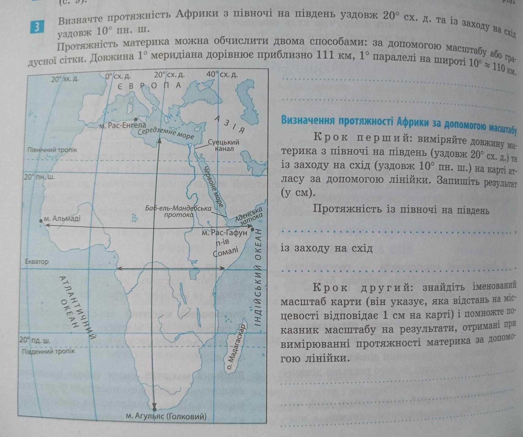 2. Протяжність Африки по 20-й довготі - це відстань між цими точками.
