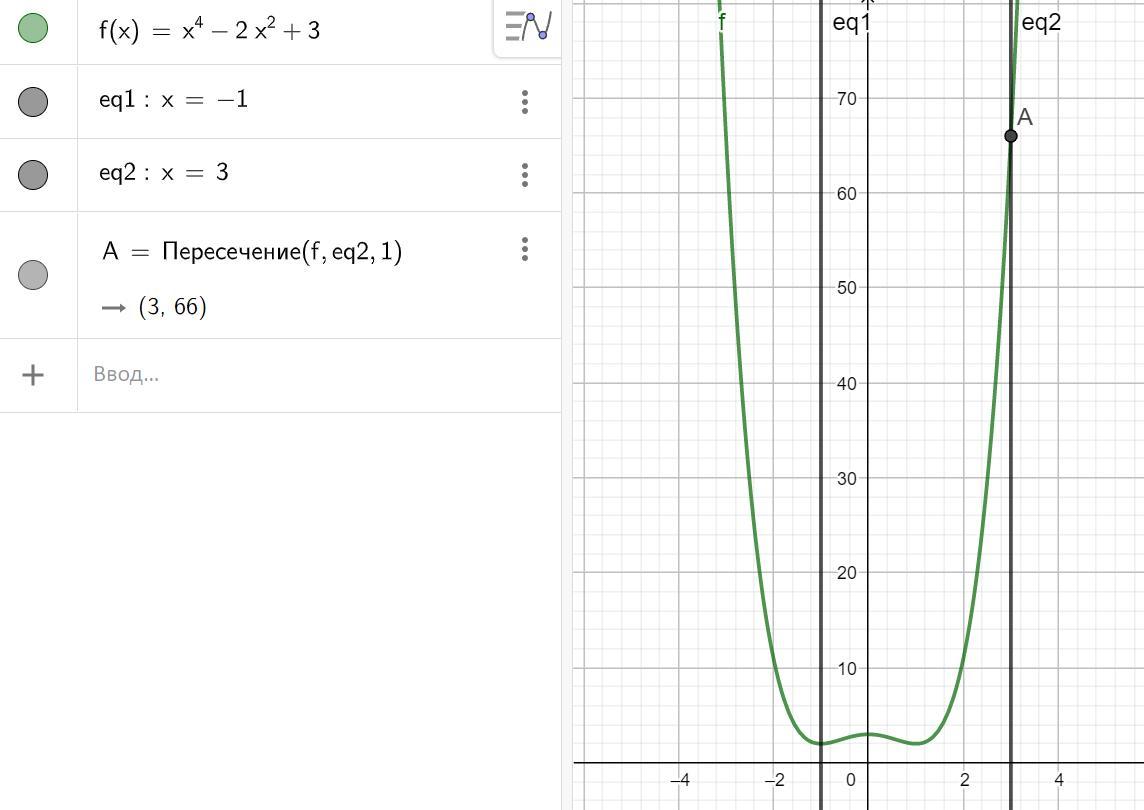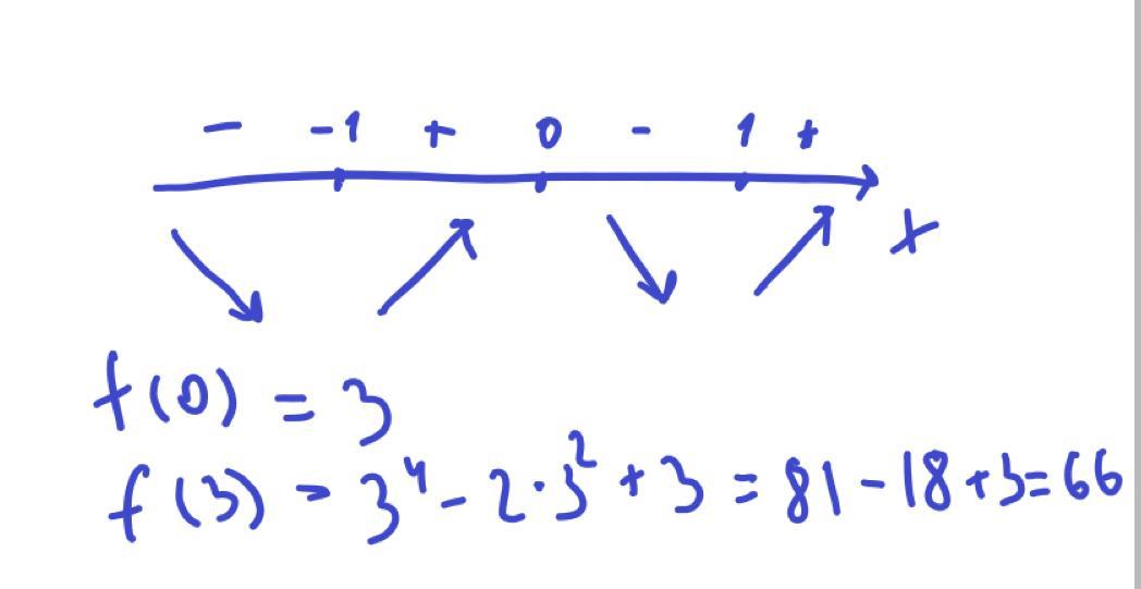 Имеет смысл сравнить значения функции в точках 0 и 3.
