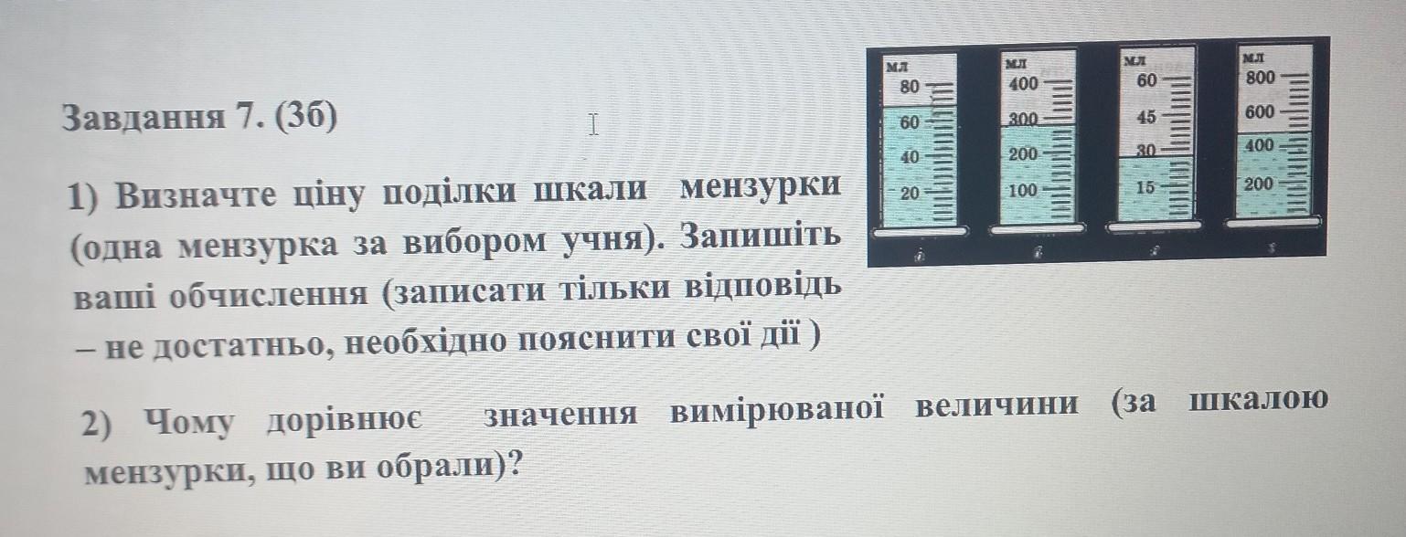 щоб знайти ціну поділки шкали потрібно взяти дві сусідні поділки з цифрами від більшої відняти меншу та отримане число поділити на кількість поділок між ними