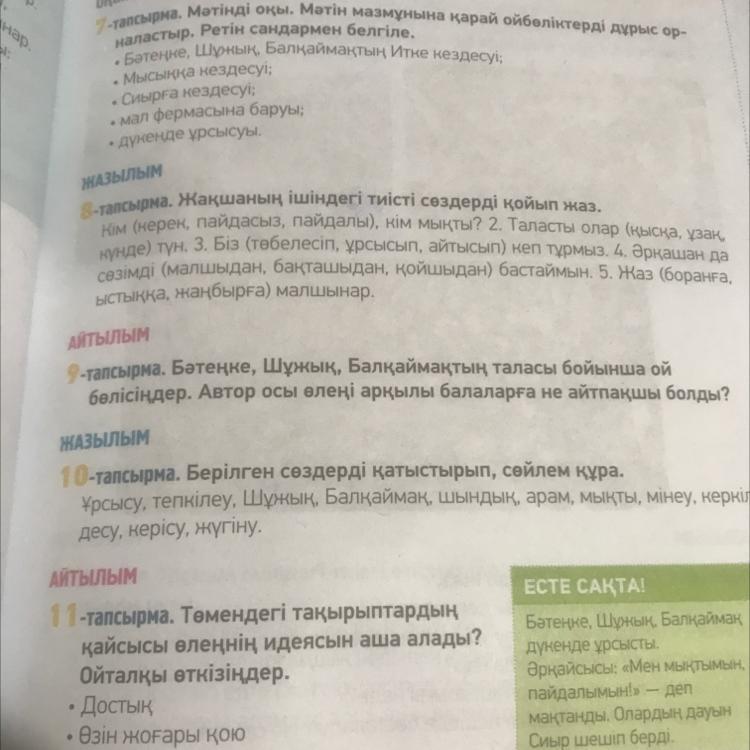 10-тапсырма. Берілген сөздердi катыстырып, сейлем құра.