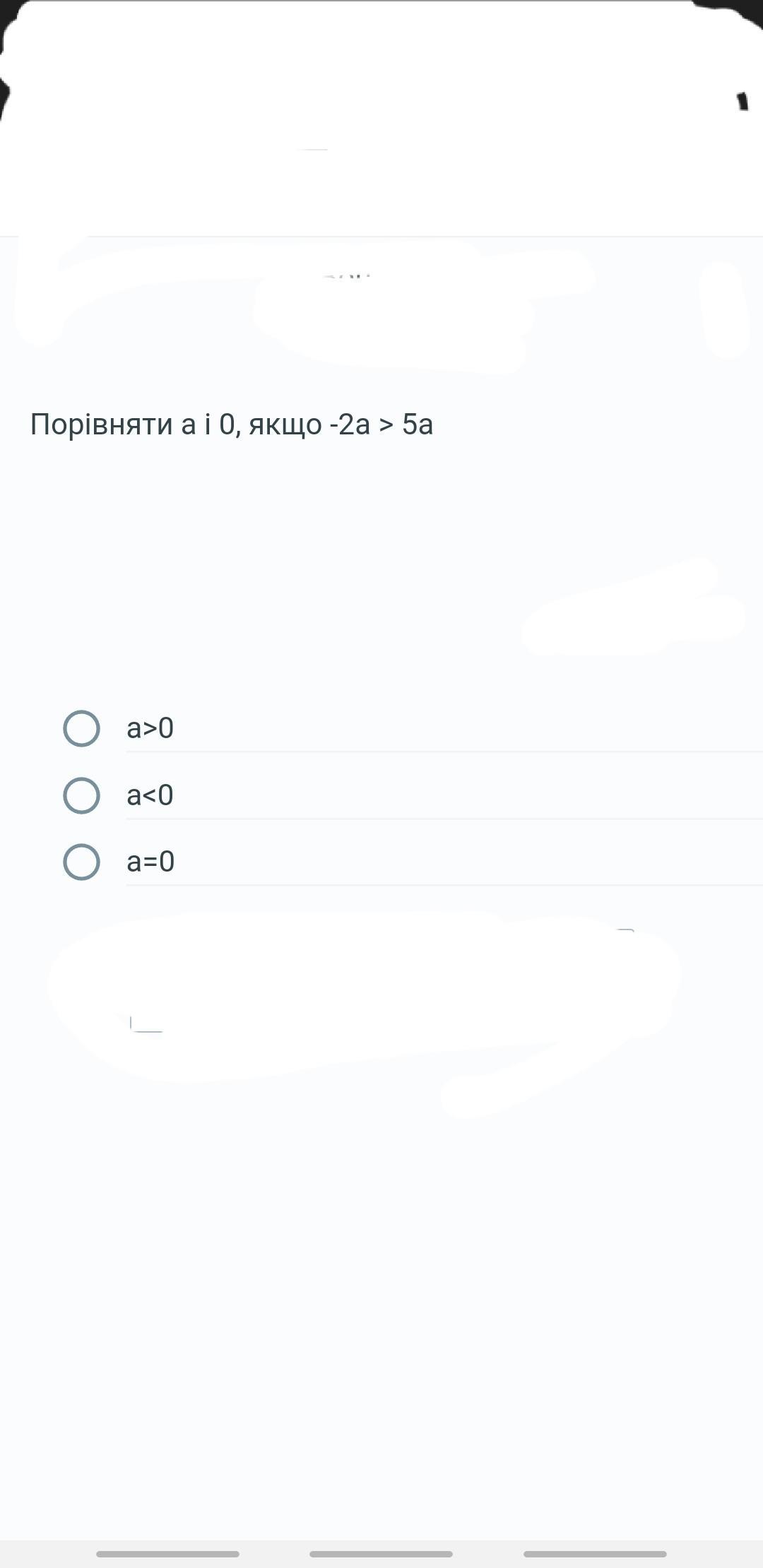 -7а > 0 (ділимо обидві частини на від'ємне число, тому міняємо знак нерівності на протилежний)