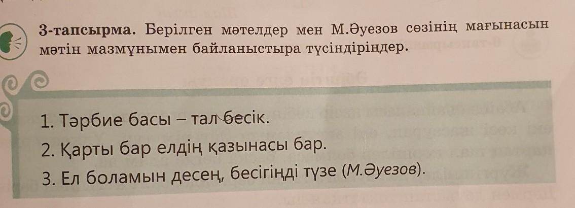 тәрбие басы- тал бесік. Ата бабамыз баяғыдан балаларын кішкентай кезініен тәрбиелеп, жақсы қасиеттерге үйретіп келе жатыр. Біздің ата анамызда солай. біздің жақсы адам болғанымызды қалайды . Сондықтан тал бесікте жатқанымыздан бастап жақсы қасиеттерге үйретіп, тәрбиелейді