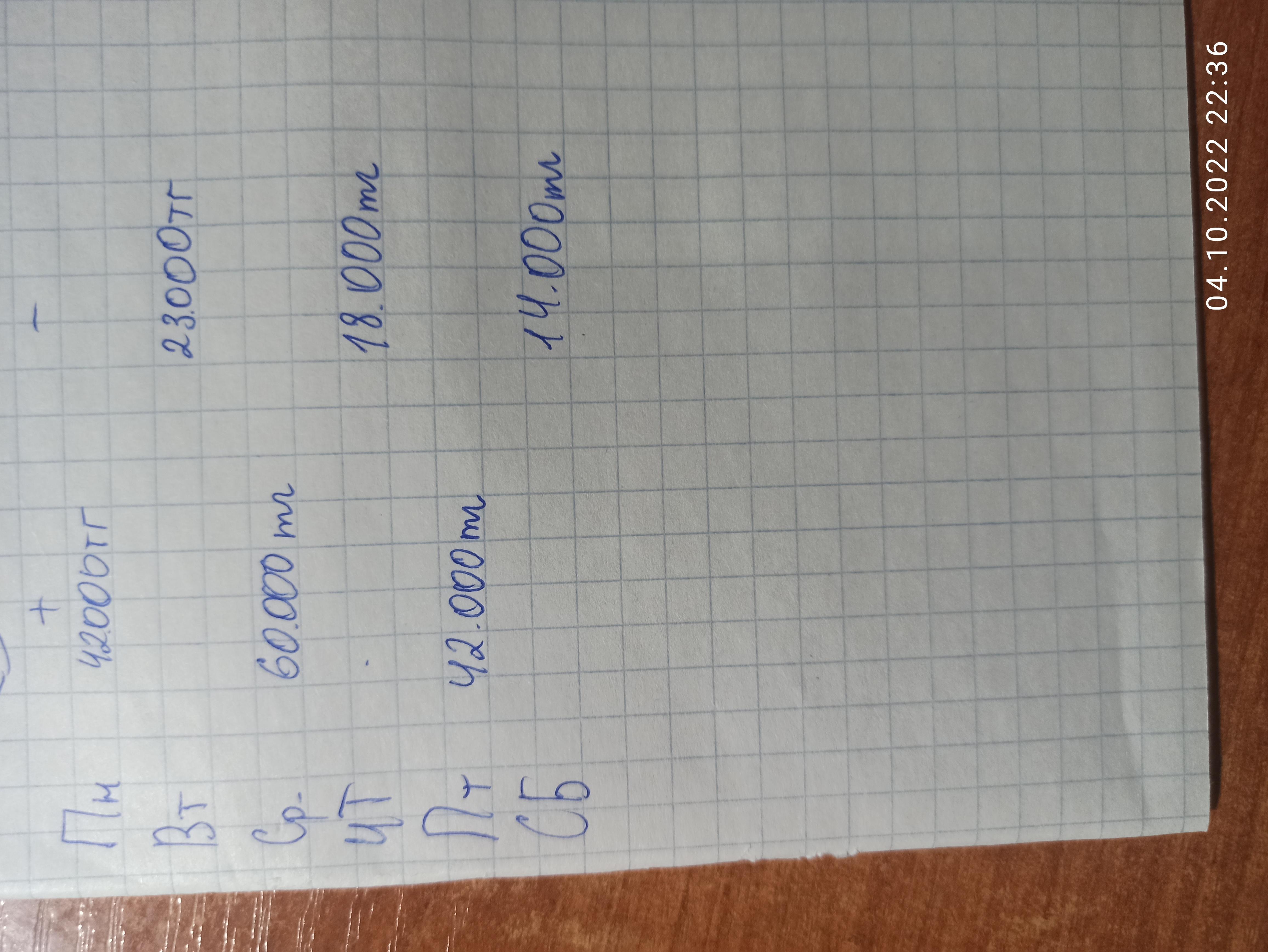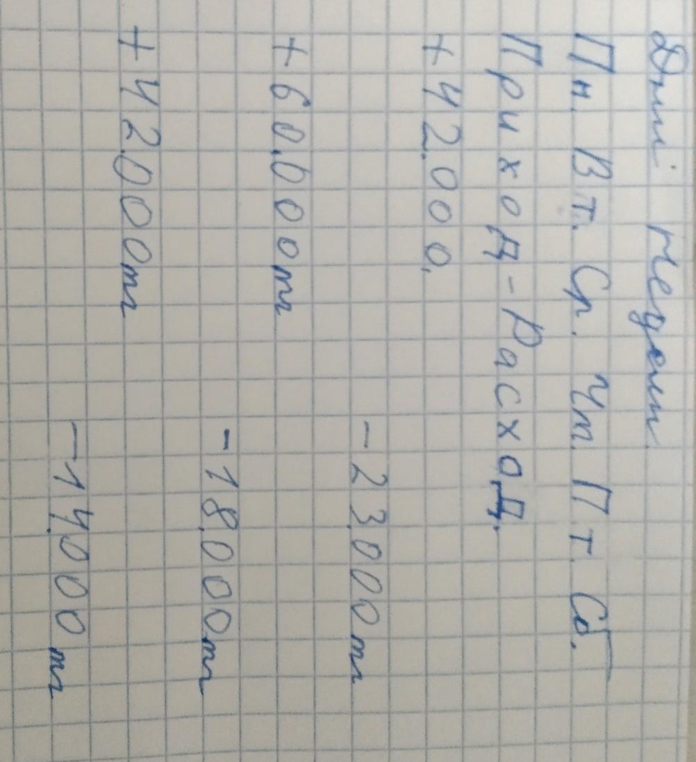 235. фирма в понедельник получила прибыль 42 000 тг, во вторник 23 000 тг убытка, в среду 60 000 тг прибыли, в четверг 18 000 тг убытка, в пятницу - 42 000 тг прибыли, в субботу - 14 000 тг убыт- ка. Заполните бухгалтерскую таблицу. Cp. Чт. Пт. Сб. Дни Недели Приход-Расход (тыс. тг) Пн. Вт.