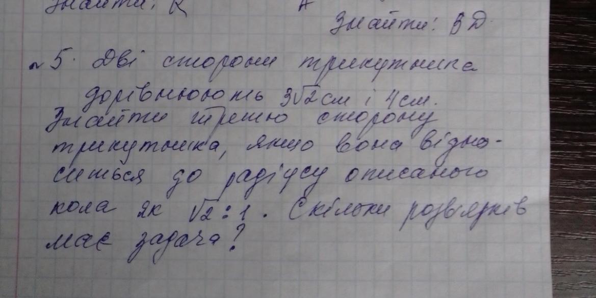 Дві сторони √2 та √3 невідома сторона x Радіус описаного кола R