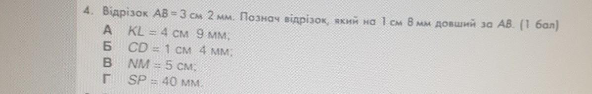 Пошаговое объяснение:3 см 2 мм + 1 см 8 мм=5 см
