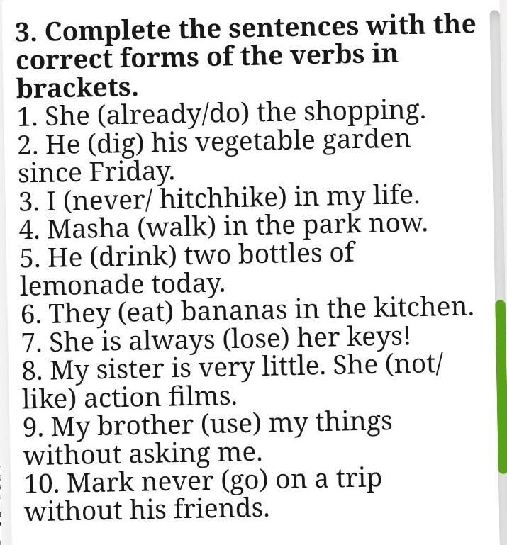1. She do the shopping.