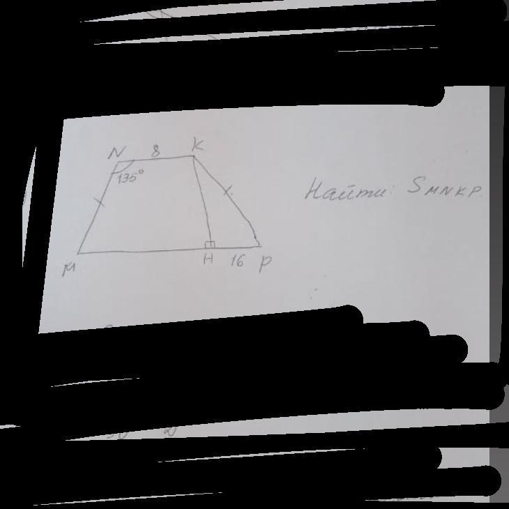 Там очень правильно все решено, но можно гораздо веселее :) Раз это равнобедренная трапеция и тупой угол 135°, острый (точнее оба) - 45°. Значит, это "обрезок" равнобедренного прямоугольного треугольника. То есть площадь равна разности площадей двух равнобедренных прямоугольных треугольников - с гипотенузами 16+8+16 = 40 и 8. То есть 20² - 4²;
