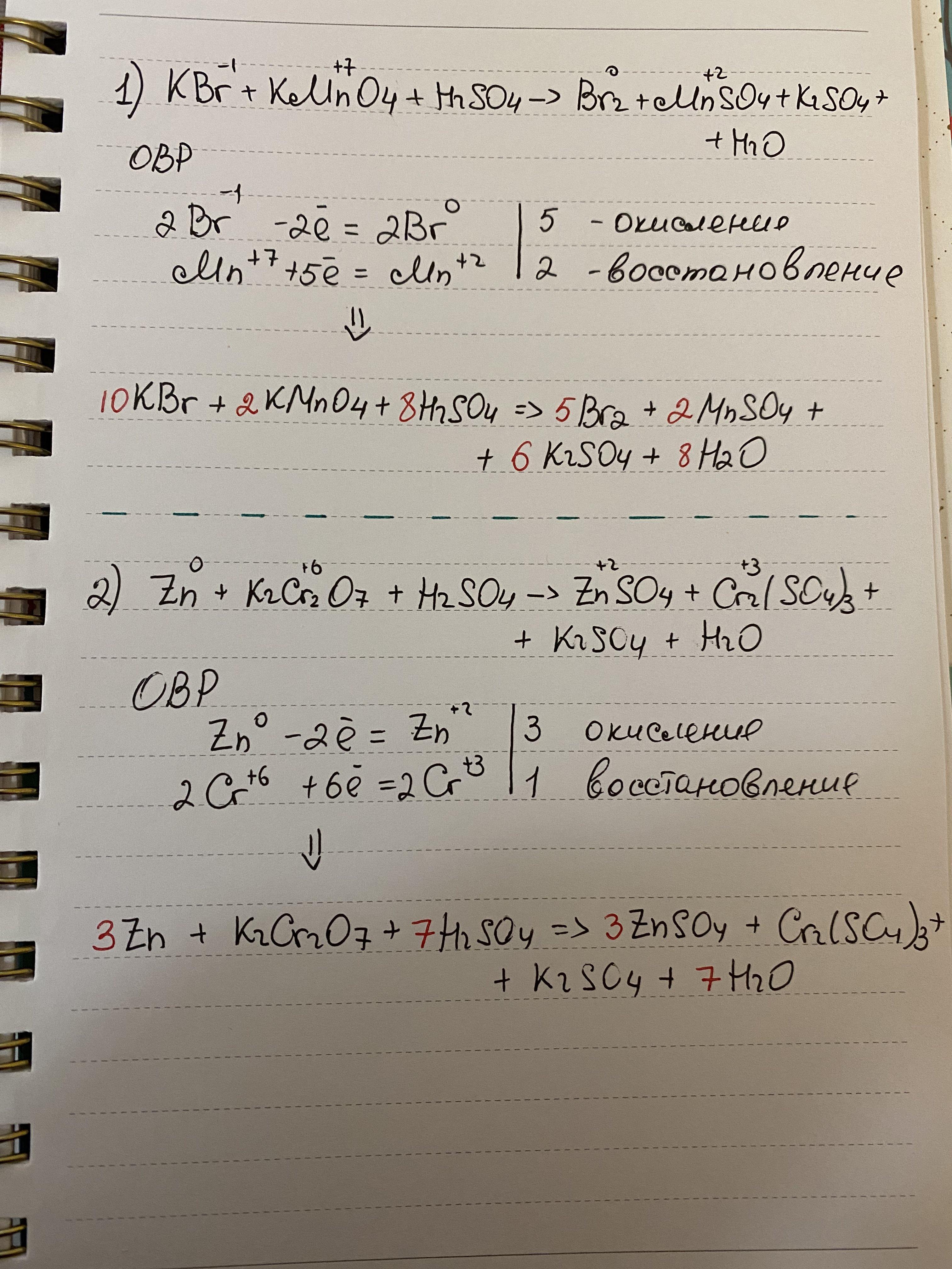1)KBr + KMnO4 + K2SO4 -› Br2 + MnSO4 + K2SO4 + H20