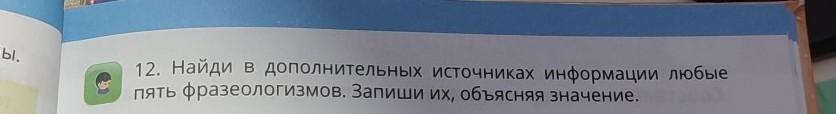 12. Найди в дополнительных источниках информации любые пять фразеологизмов. Запиши их, объясняя значение. 12 ПОЖАЛУЙСТА Я ДЕЛАБ ЭТО В 2:24