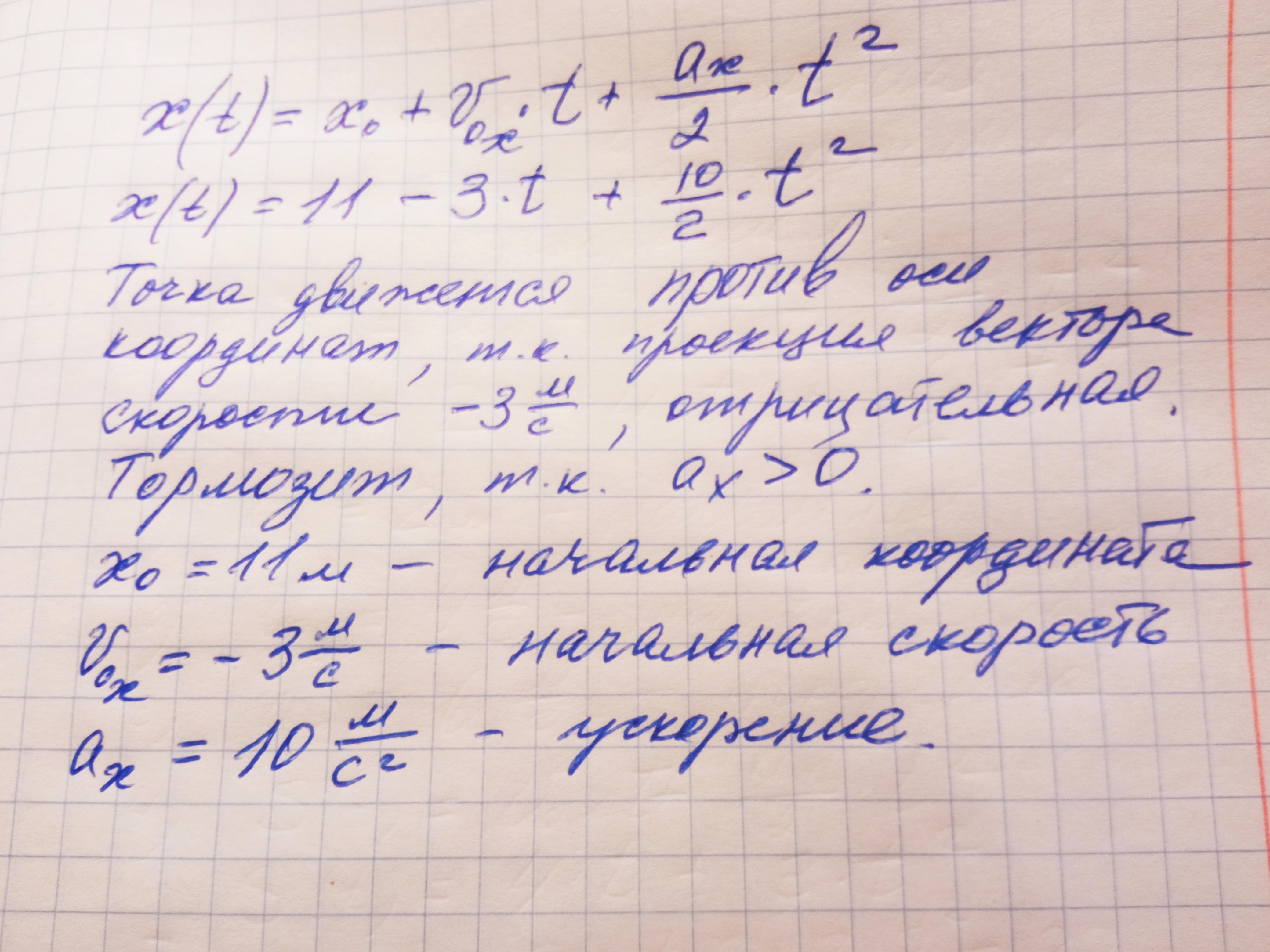 Помгите срочно 5. Уравнение координаты материальной точки, движущейся вдоль оси Ох, имеет вид x=11-3t+5+² Определите характер движения точки. Найдите начальную координату, начальную скорость и ускорение точки. [4]