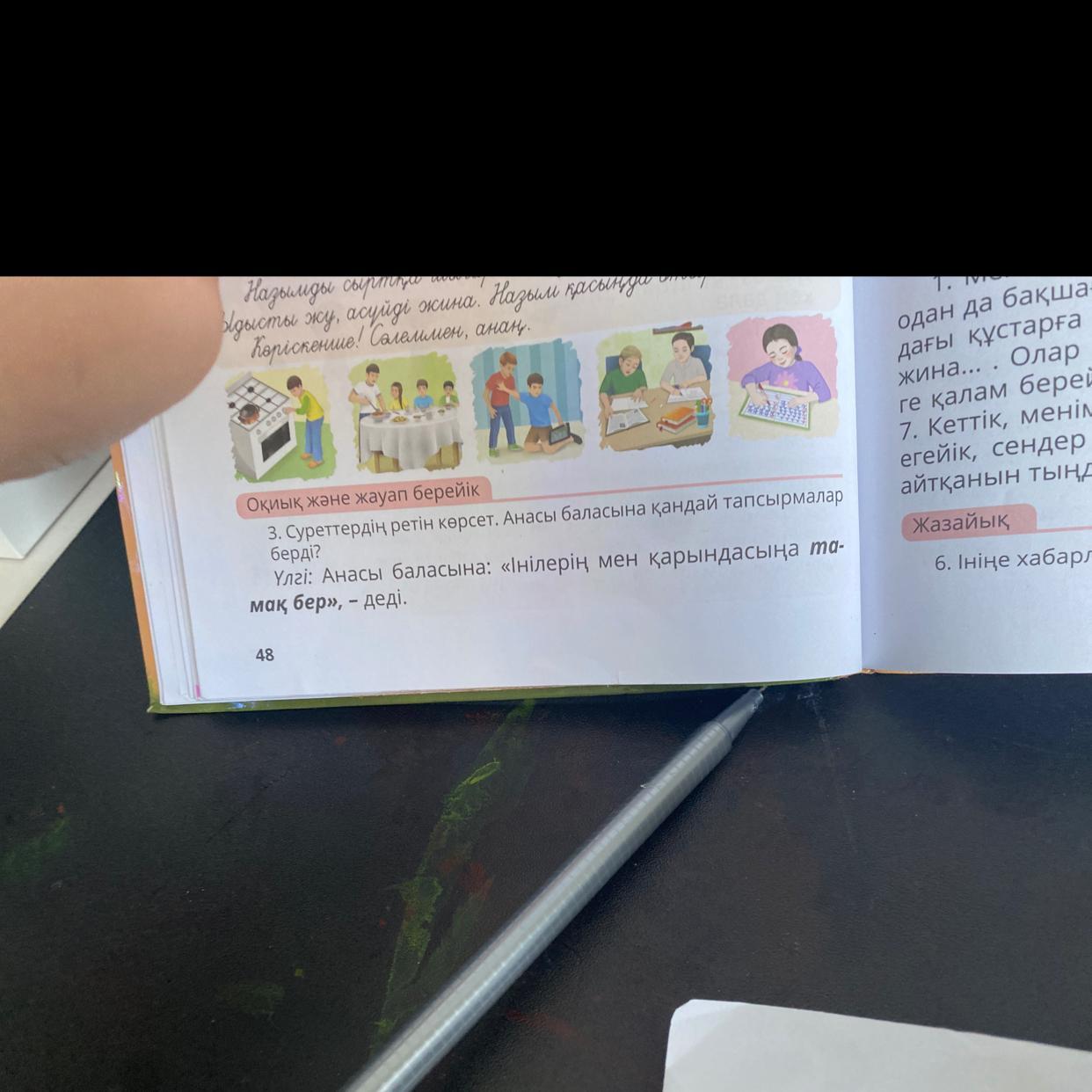 3. Суреттердің ретін көрсет. Анасы баласына кандай тапсырмалар