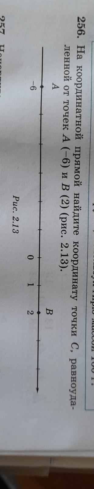 ге ), О 256. На координатной прямой найдите координату точки С, равноуда- ленной от точек А (-6) и в (2) (рис. 2.13). A -6 Puc. 2.13 0 1 В 2 можно фото пж
